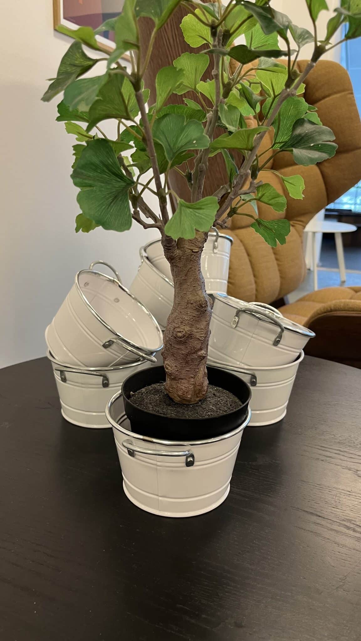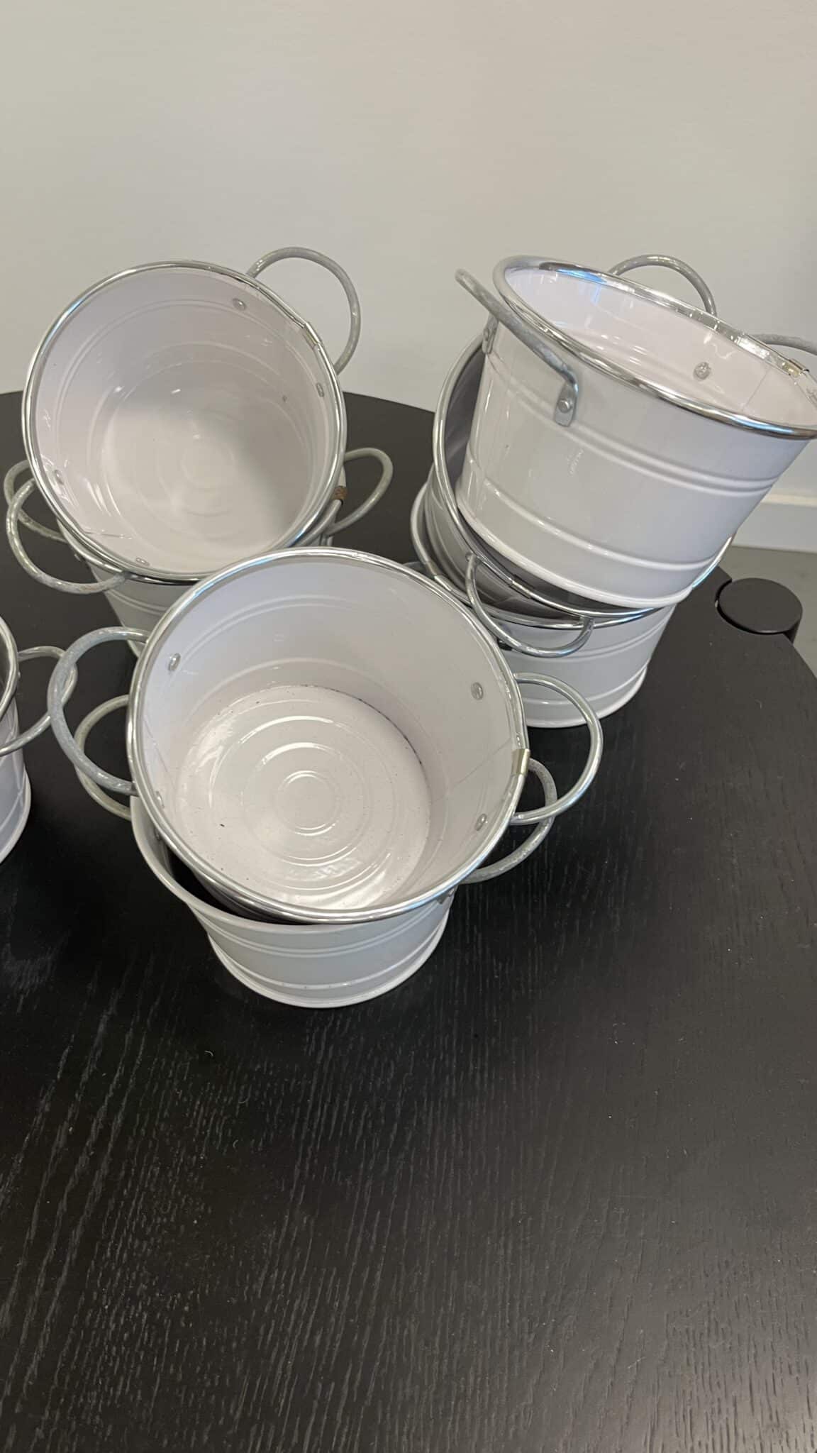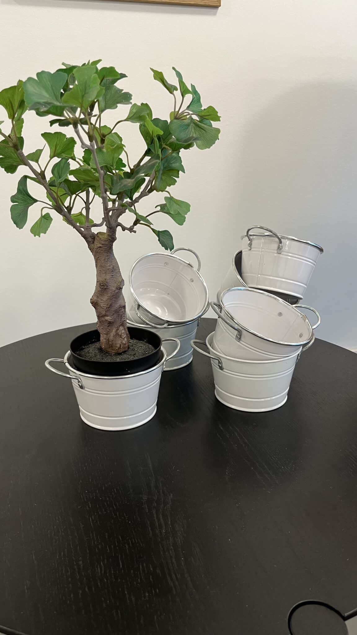 Enkle og stilfulde hvide blomsterpotter i metal – et perfekt valg til både små planter og dekorative formål i hjemmet. Med deres tidløse design passer de ind overalt, fra vindueskarmen til terrassen, og de medfølgende håndtag gør dem nemme at flytte rundt. Skab et friskt og indbydende udtryk med disse alsidige potter, der kombinerer funktionalitet med klassisk charme
