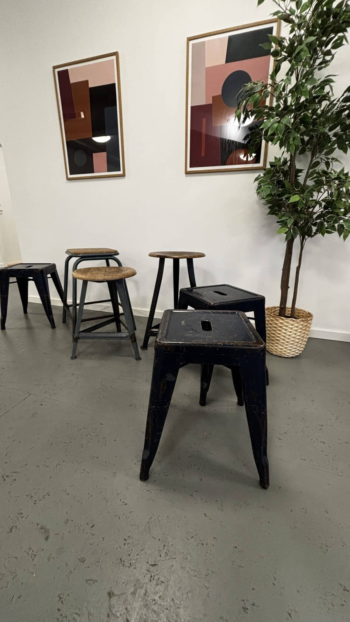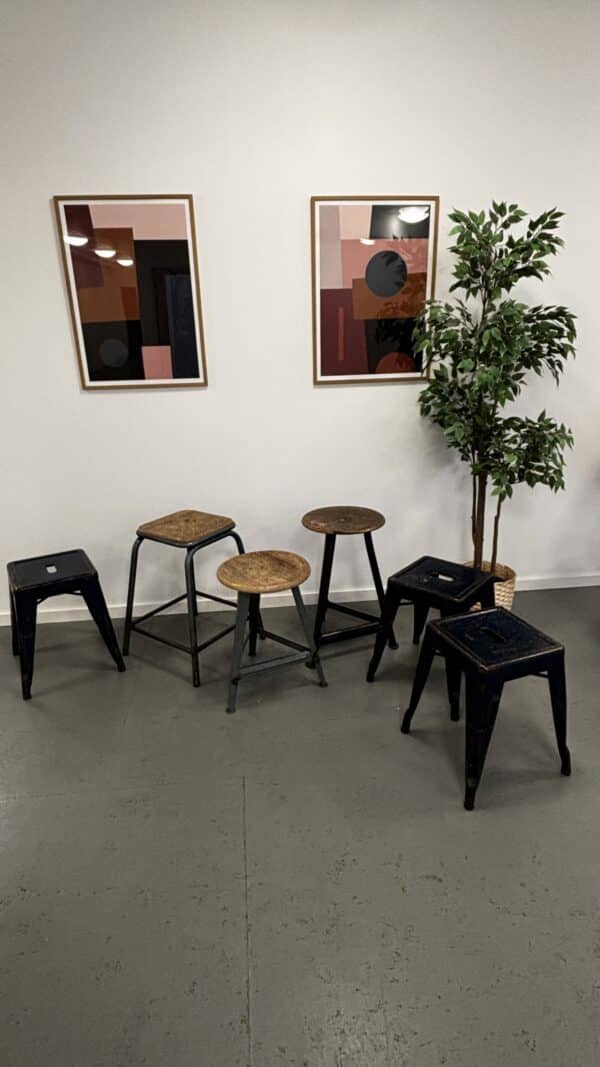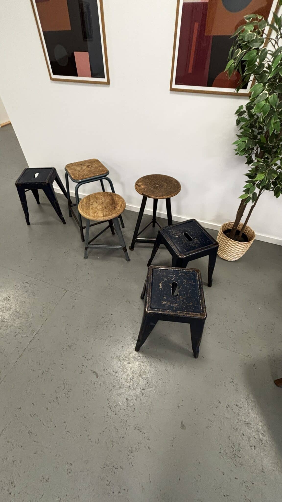Skamlerne fremstår med ægte brugsspor, som understreger deres historie og autentiske udtryk.